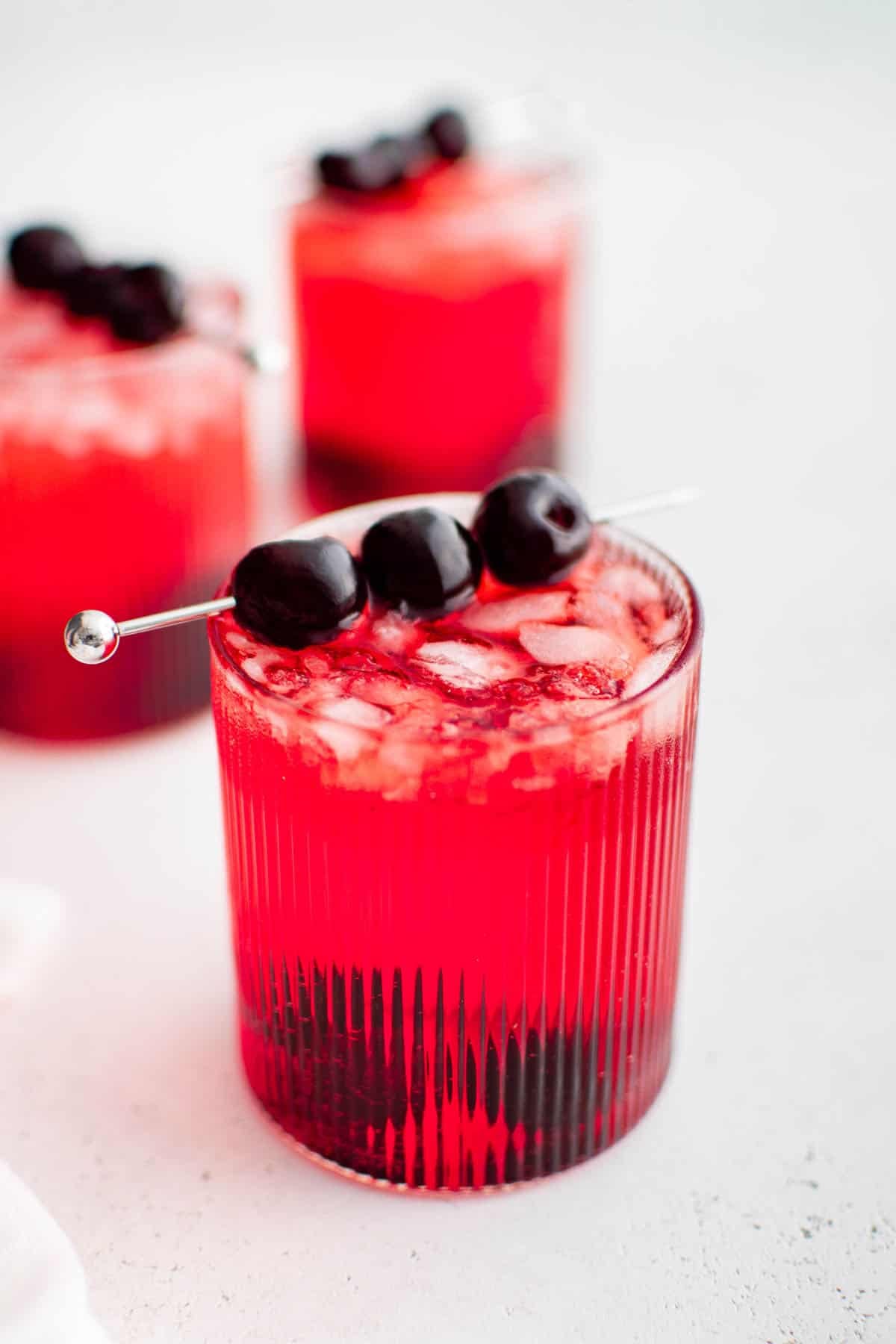 - Garnish with maraschino cherries and serve immediately.