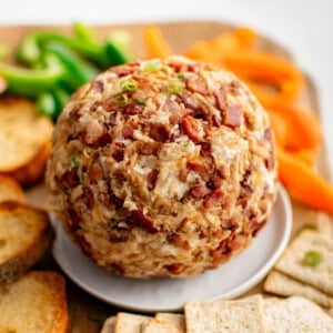 A little salty, a little savory, lots of French onion flavor. This French Onion Cheeseball is always the first to disappear at parties!Â