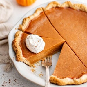 Store leftover pie in an airtight container in the fridge for 3 days. I love a good leftover piece of pumpkin pie that’s extra cold from the fridge! This is the perfect pie to make the day before Thanksgiving, because I always think it’s better when it sits for a day.