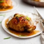 Sweet, tangy, savory, this Honey Garlic Chicken is a delicious dinner that really has it all. Crispy chicken thighs are marinated in a blend of spices, baked to perfection, and glazed with a homemade honey garlic sauce. Pair with some simple white rice and dinner is served!